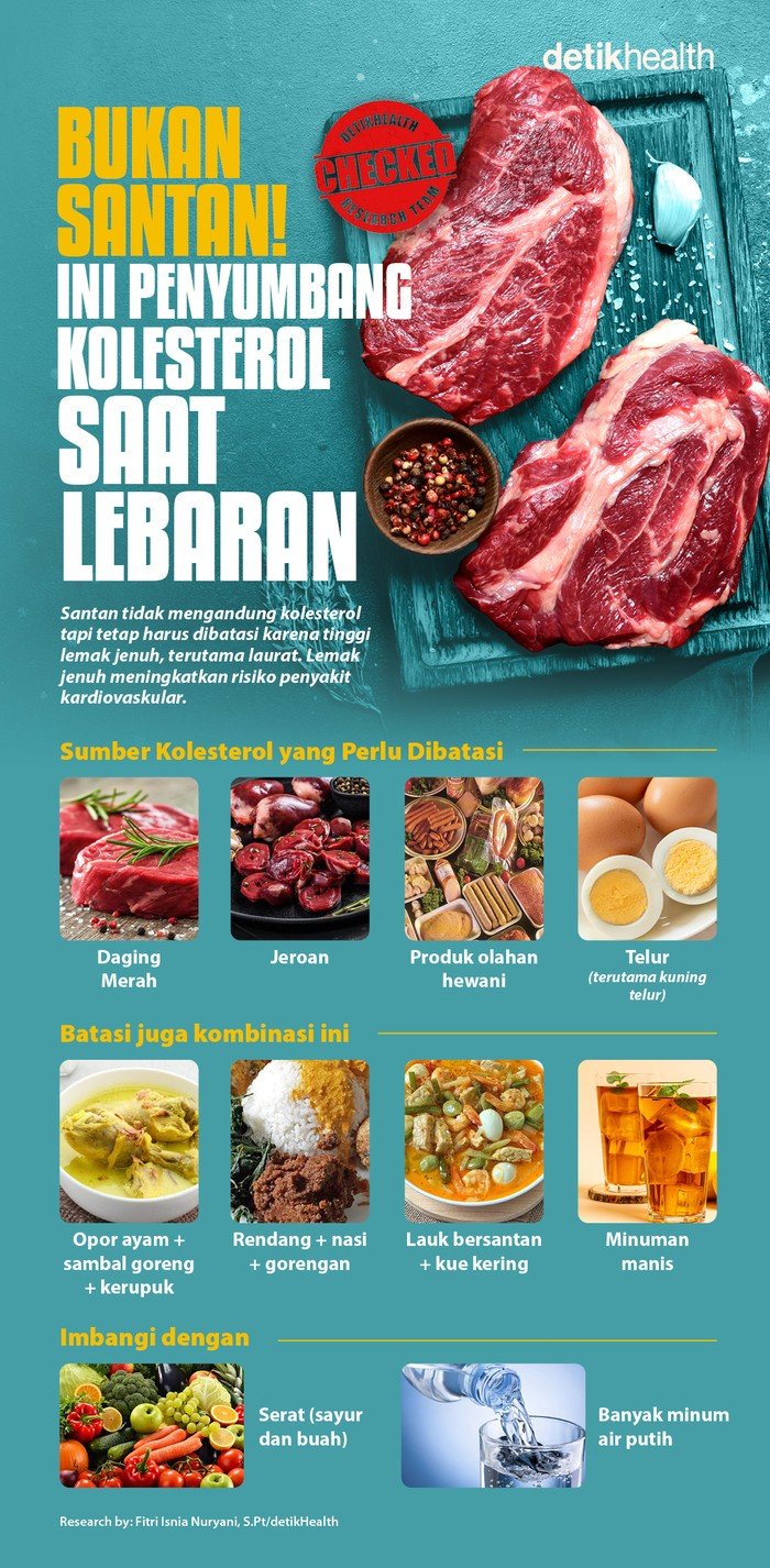 Lalu apa saja yang merupakan sumber kolesterol saat lebaran? Simak dalam infografis berikut.